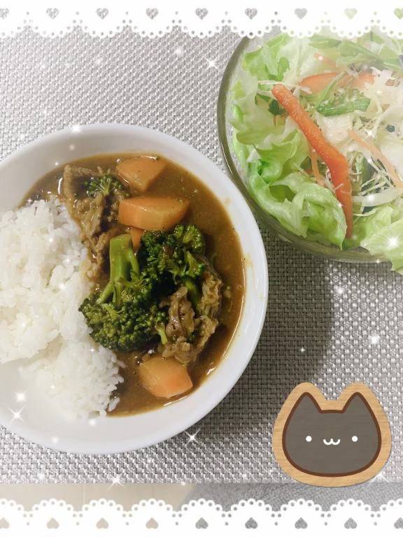 サラダとカレー😆